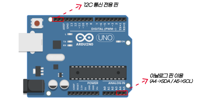 - 아날로그핀을 이용하거나 12C전용 핀을 사용합니다.