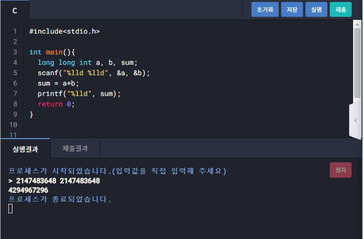 1039 : [기초-산술연산] 정수 2개 입력받아 합 출력하기2