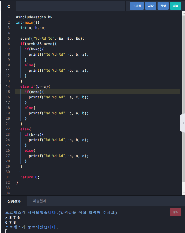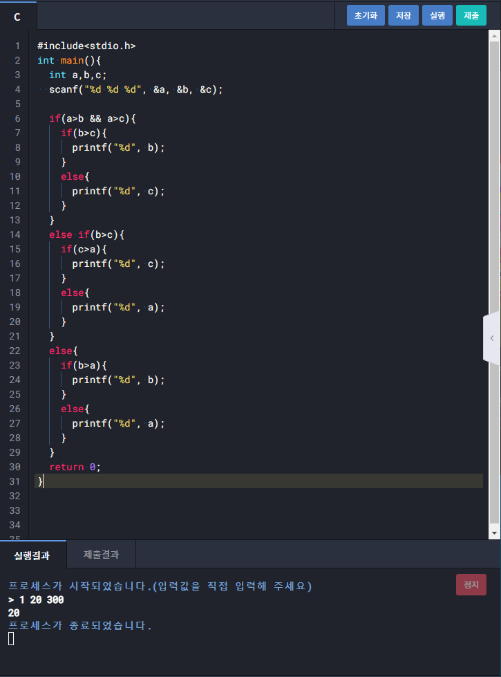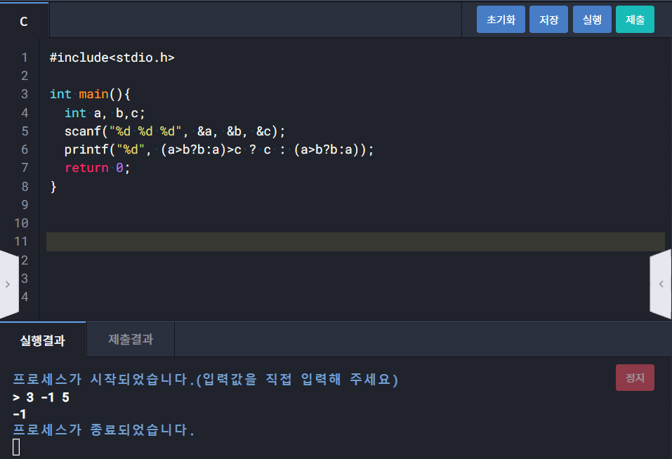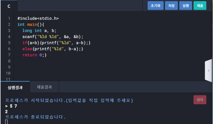 1051 : [기초-비교연산] 두 정수 입력받아 비교하기3