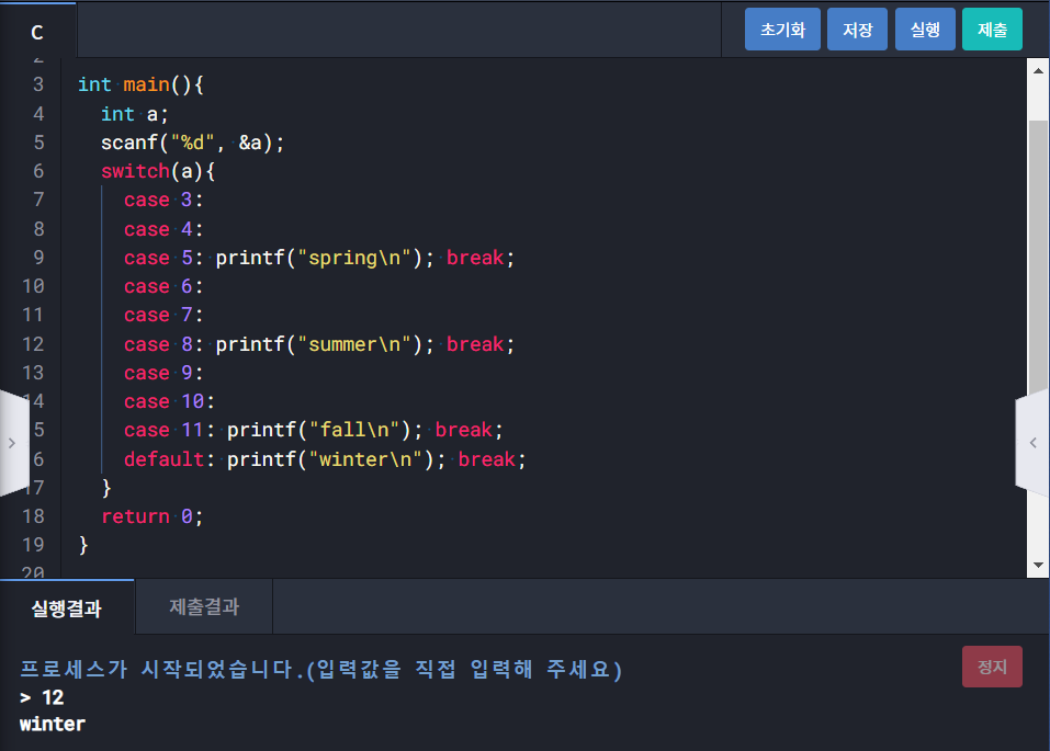 1070 : [기초-조건/선택실행구조] 월 입력받아 계절 출력하기