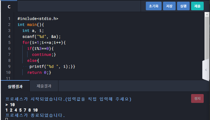 1072 : [기초-반복실행구조] 정수 입력받아 계속 출력하기