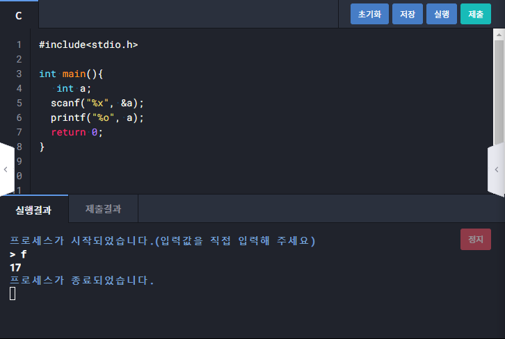 1035 : [기초-출력변환] 16진 정수 1개 입력받아 8진수로 출력하기