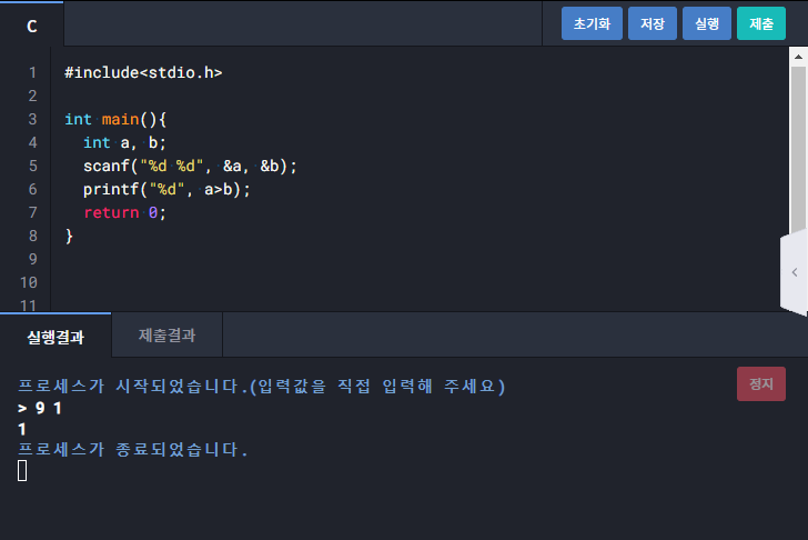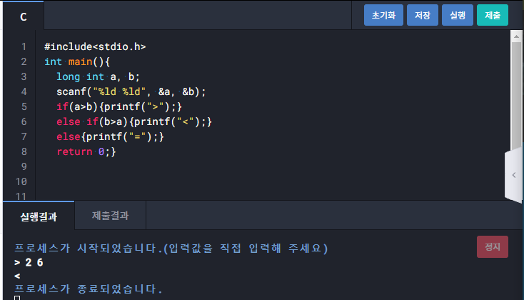 1049 : [기초-비교연산] 두 정수 입력받아 비교하기1