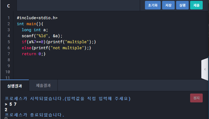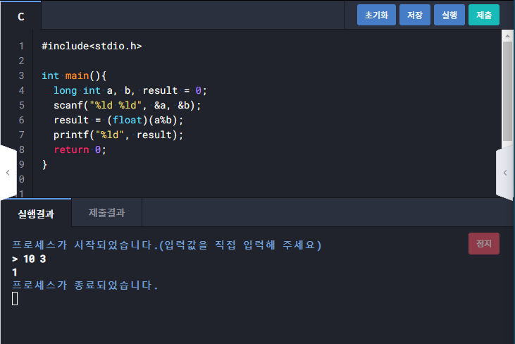1043 : [기초-산술연산] 정수 2개 입력받아 나눈 나머지 출력하기