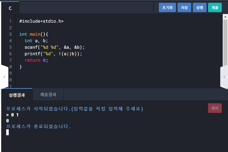 1058 : [기초-논리연산] 둘 다 거짓일 경우만 참 출력하기