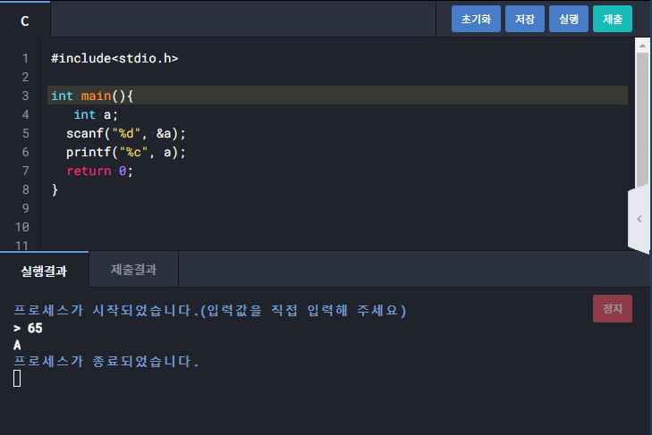 1037 : [기초-출력변환] 정수 입력받아 아스키 문자로 출력하기