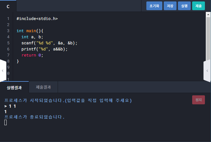 1054 : [기초-논리연산] 둘 다 참일 경우만 참 출력하기