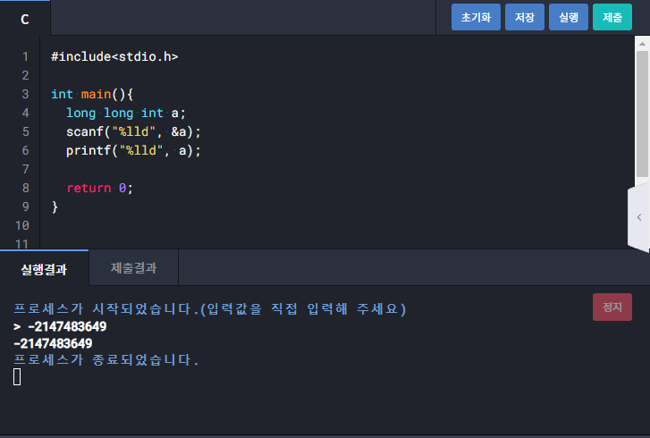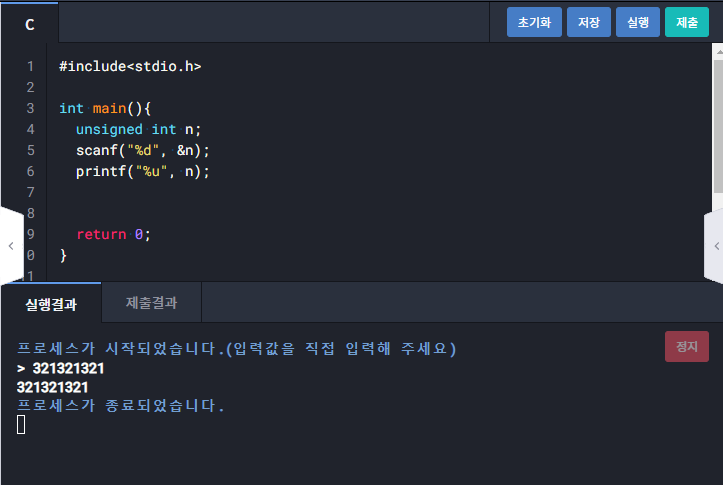 1028 : [기초-데이터형] 정수 1개 입력받아 그대로 출력하기2