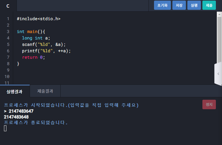 1044 : [기초-산술연산] 정수 1개 입력받아 1 더해 출력하기