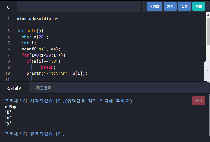 1024 : [기초-입출력] 단어 1개 입력받아 나누어 출력하기