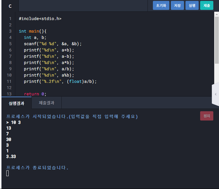 1045 : [기초-산술연산] 정수 2개 입력받아 자동 계산하기