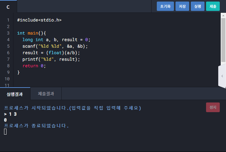 1042 : [기초-산술연산] 정수 2개 입력받아 나눈 몫 출력하기