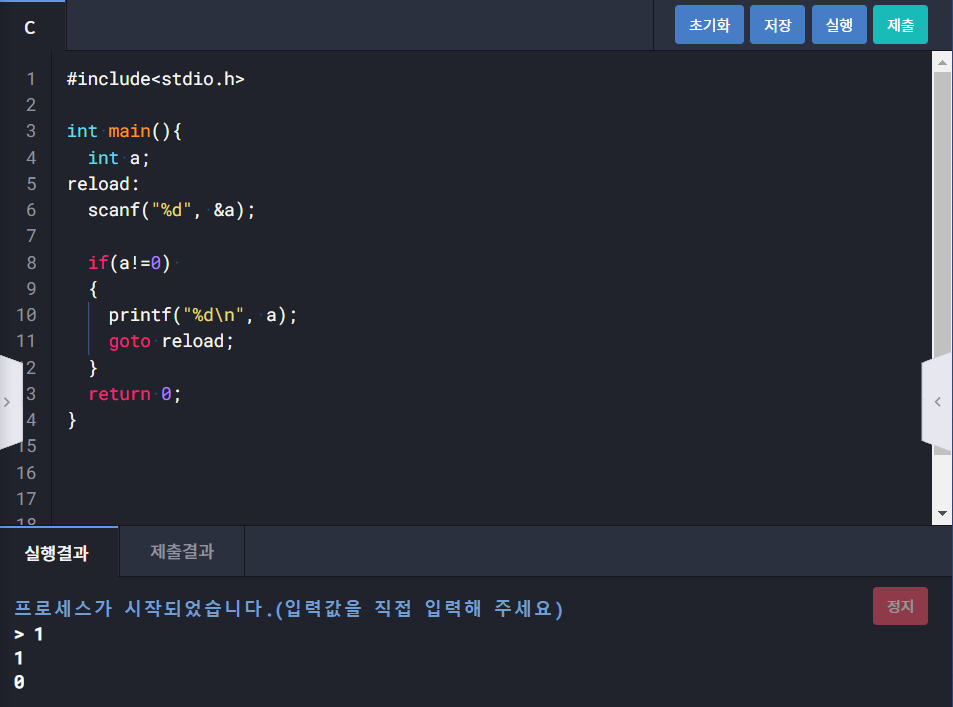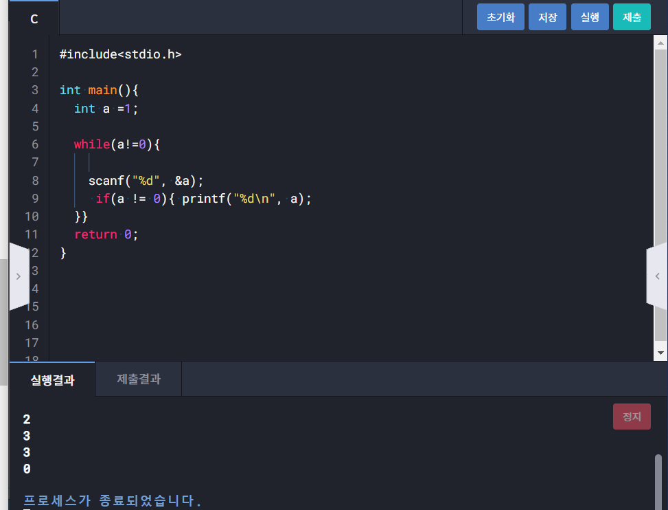 1071 : [기초-반복실행구조] 0 입력될 때까지 무한 출력하기