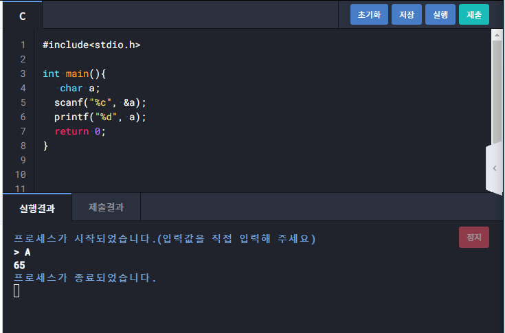 1036 : [기초-출력변환] 영문자 1개 입력받아 10진수로 출력하기