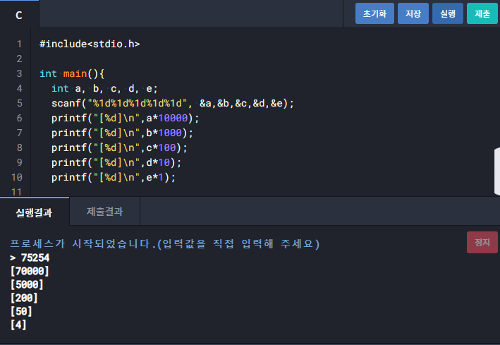 1025 : [기초-입출력] 정수 1개 입력받아 나누어 출력하기