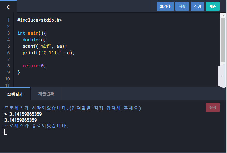 1029 : [기초-데이터형] 실수 1개 입력받아 그대로 출력하기2