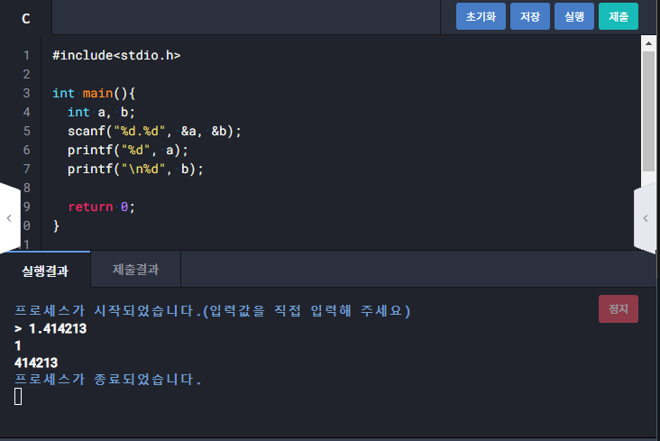 1023 : [기초-입출력] 실수 1개 입력받아 부분별로 출력하기
