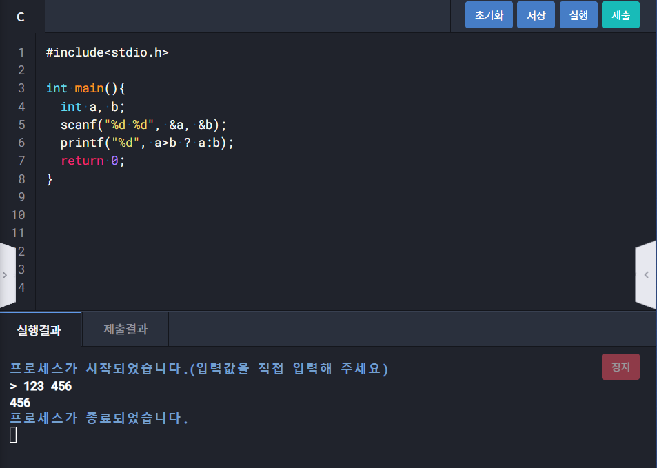 1063 : [기초-삼항연산] 두 정수 입력받아 큰 수 출력하기