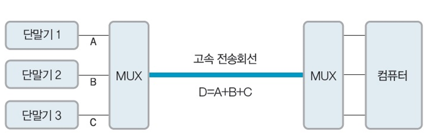 - 하나의 고속 통신 회선을 다수의 다말기가 공유할 수 있도록 하는 것입니다.