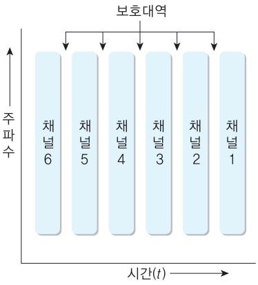 - 채널들 간에 상호 간섭을 막기 위해 반드시 *보호 대역(Guard Band)을 두어야 합니다.