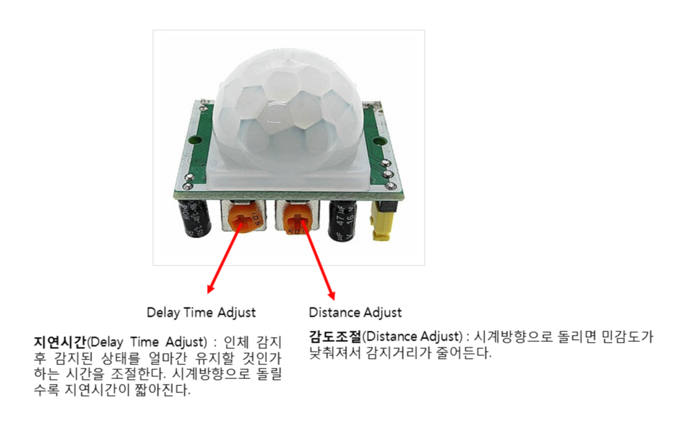 - 수동적외선센서로 적외선을 통해 사람의 움직임을 감지하는 센서