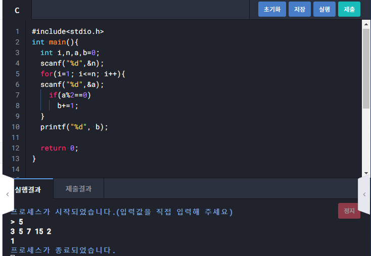 1268 : n개의 수 중 짝수의 개수