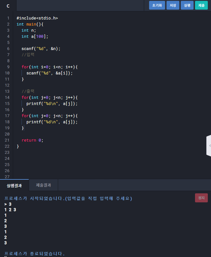 1403 : 배열 두번 출력하기