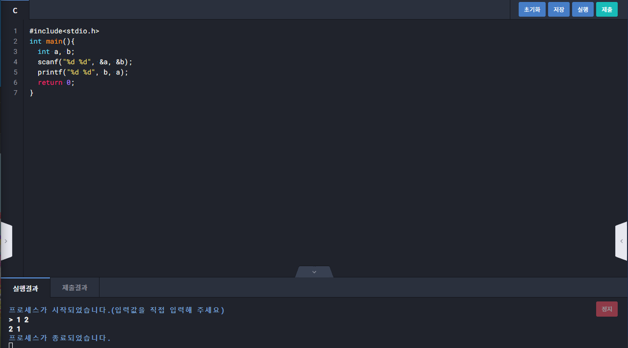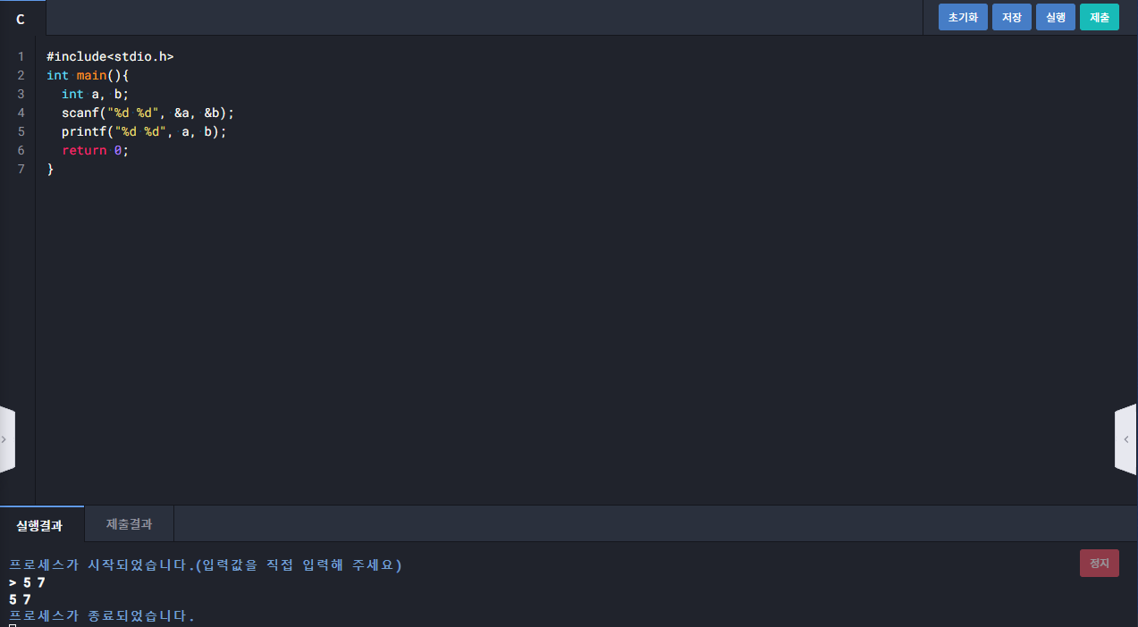 1112 : 두 정수 출력