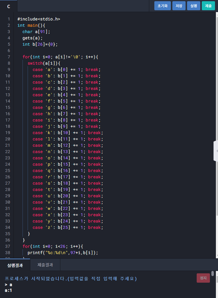 1412 : 알파벳 개수 출력하기