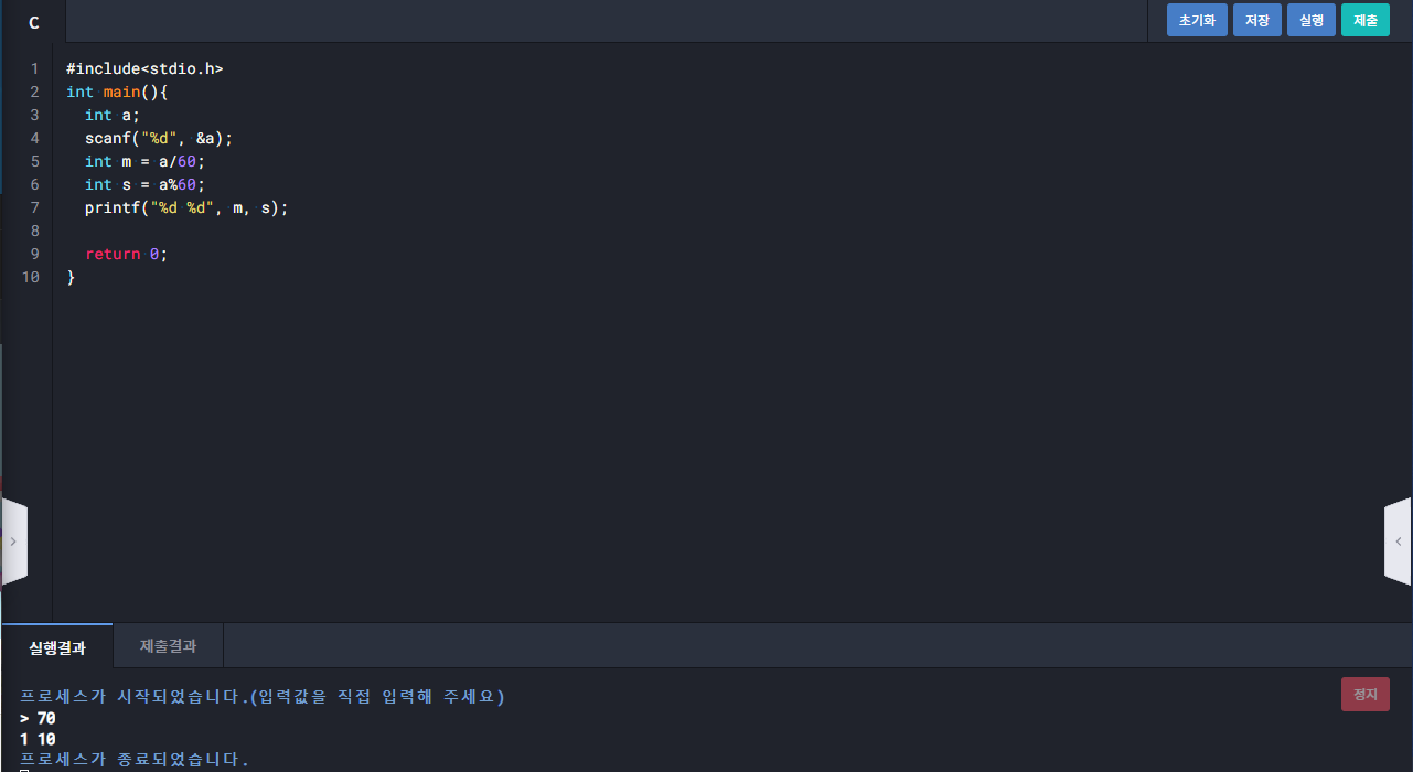 1122 : 초를 분/초로 변환