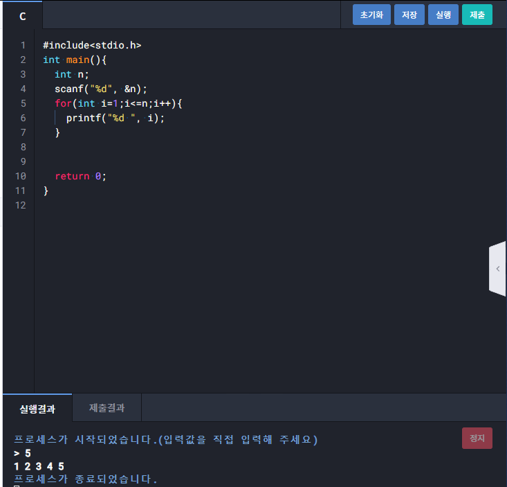 1252 : 1 부터 n 까지 출력하기