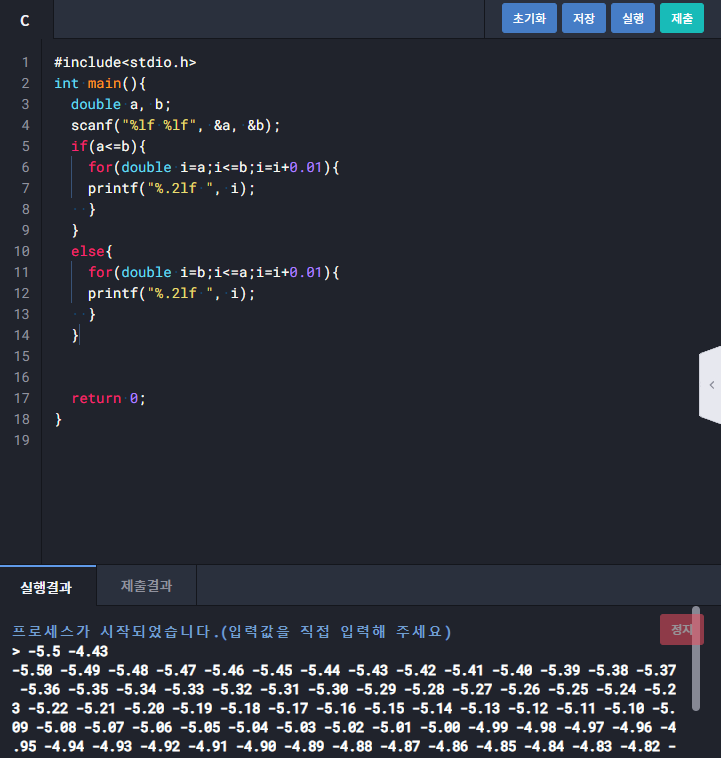 1255 : 두 실수 사이 출력하기