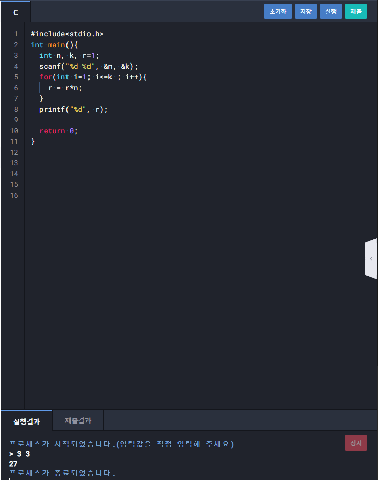 1275 : k 제곱 구하기