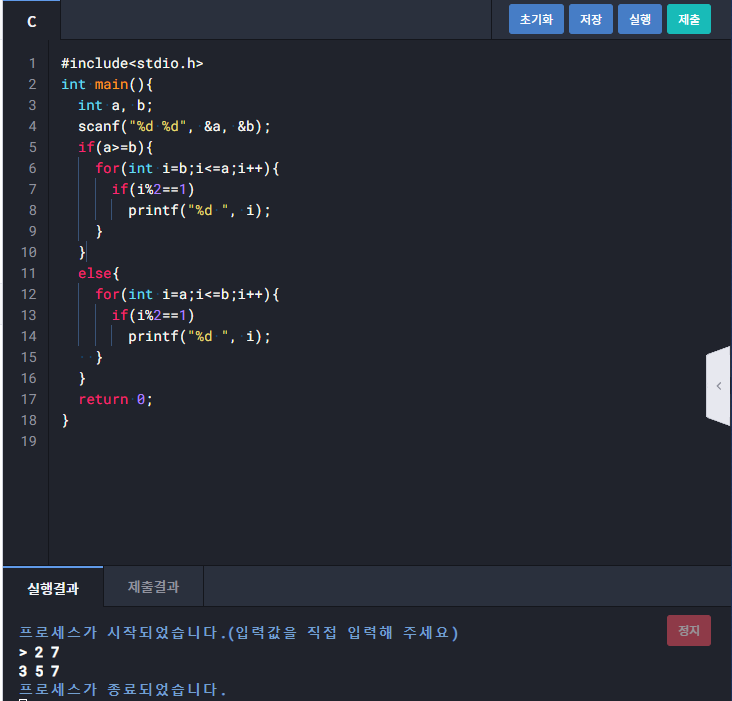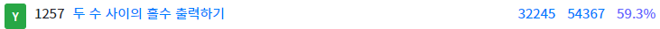 1257 : 두 수 사이의 홀수 출력하기