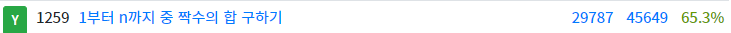 1259 : 1부터 n까지 중 짝수의 합 구하기