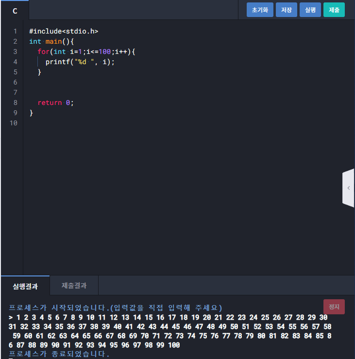 1251 : 1 부터 100까지 출력하기
