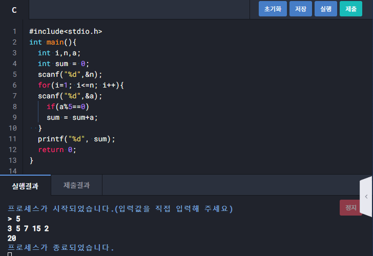 1267 : n개의 수 중 5의 배수의 합