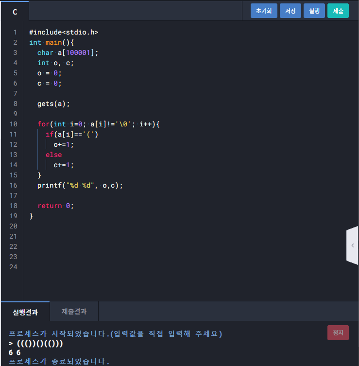 1410 : 올바른 괄호 1 (괄호 개수 세기)