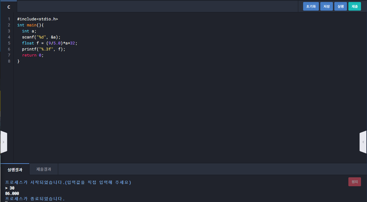 1123 : 섭씨 온도를 화씨 온도로 변환